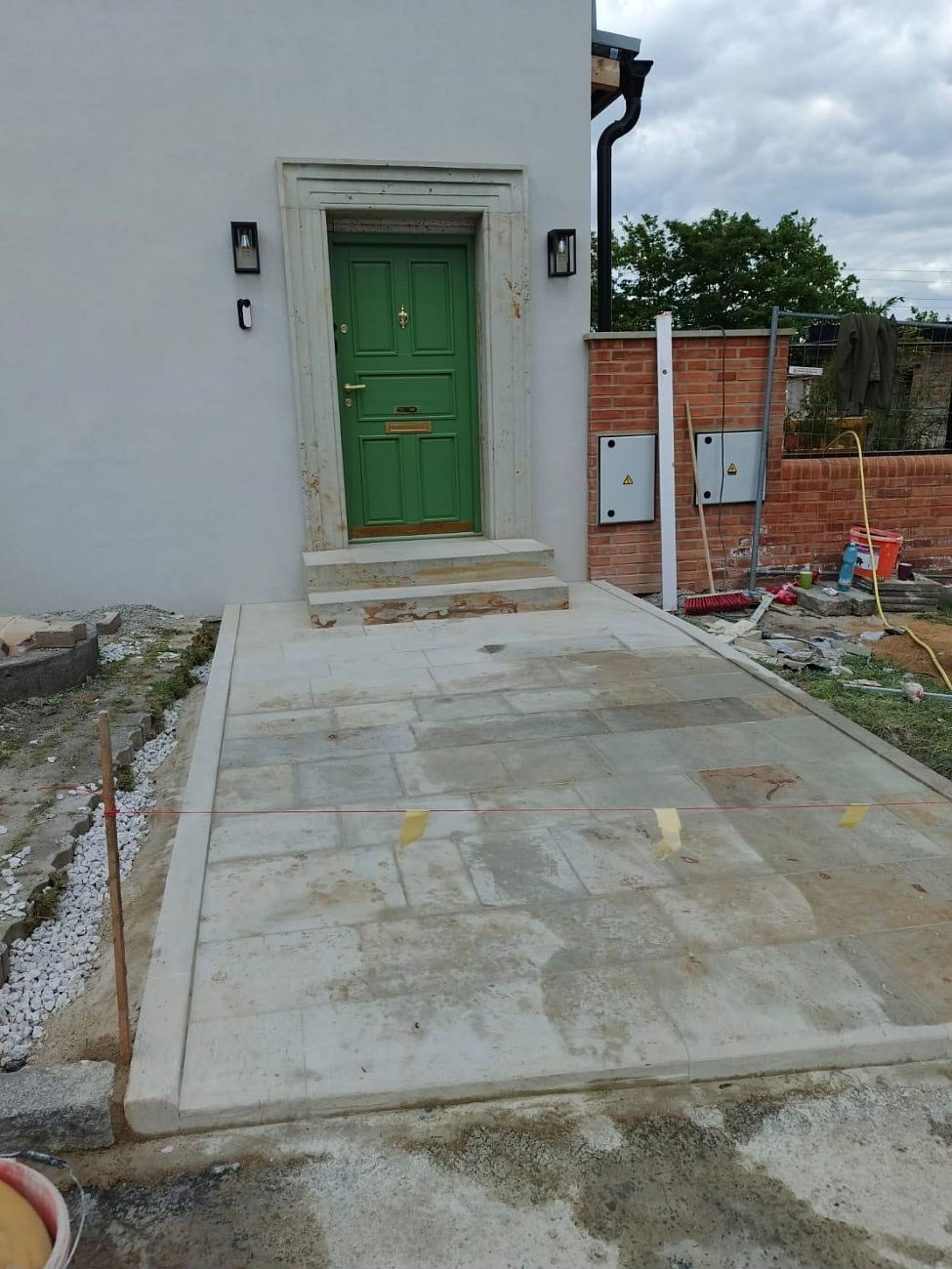Celá realizace byla provedena s důrazem na přesné řemeslné zpracování, správné výškové návaznosti a bezpečný pohyb. Díky kombinaci kamenné dlažby, schodů z kamene a kamenných futer vznikl reprezentativní vstup do domu, který je nejen estetický, ale i maximálně funkční. Přírodní pískovec navíc zajišťuje vysokou odolnost, dlouhou životnost a přirozený vzhled.