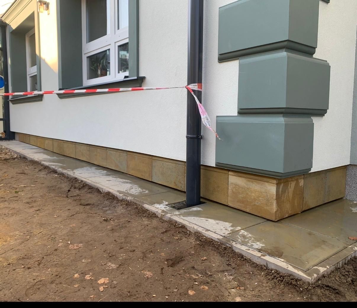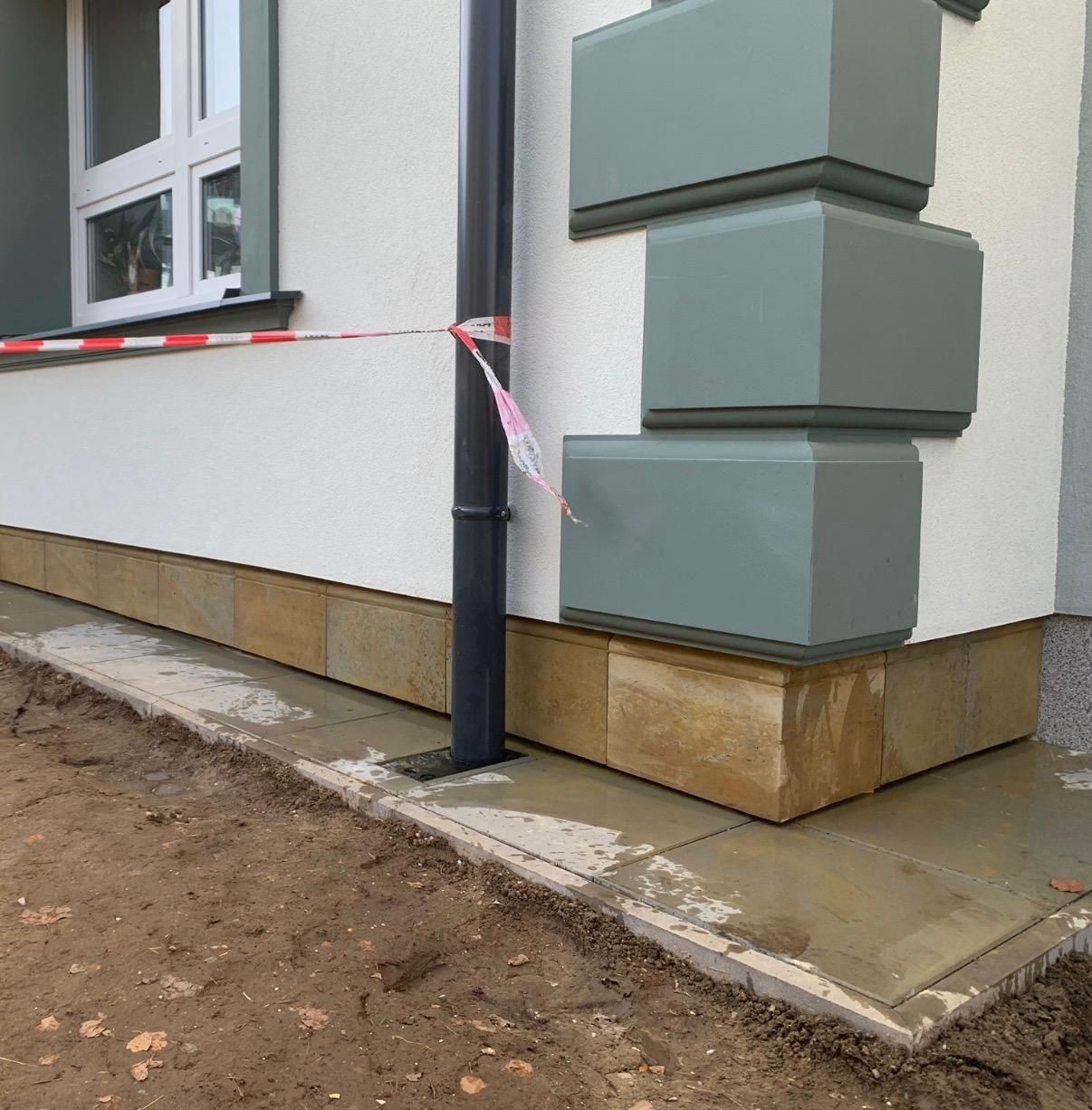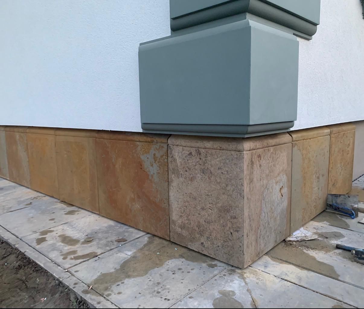Realizace byla provedena s důrazem na přesné technické provedení, bezpečné kotvení pískovcových desek a dlouhodobou stabilitu všech obkladových kamenů. Zavěšený sokl umožňuje také lepší odvětrání a ochranu konstrukce budovy před vlhkem a mrazem.