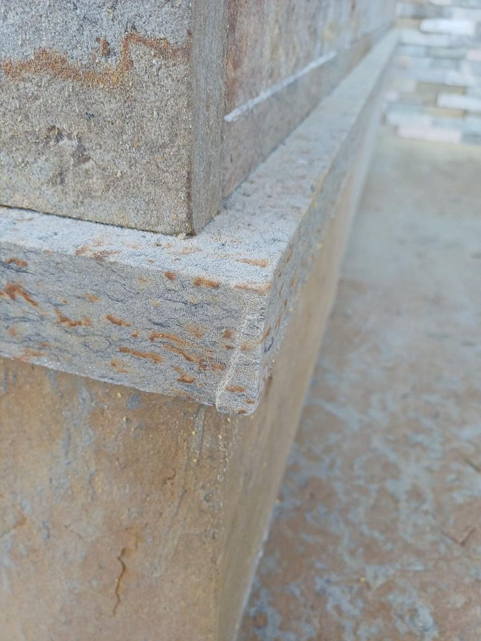 Použit byl přírodní pískovec v krémových, žlutých až jemně oranžových odstínech, který přirozeně ladí jak s barvou vstupních dveří, tak s fasádou domu. Výsledkem je funkční a zároveň reprezentativní vstup do domu.